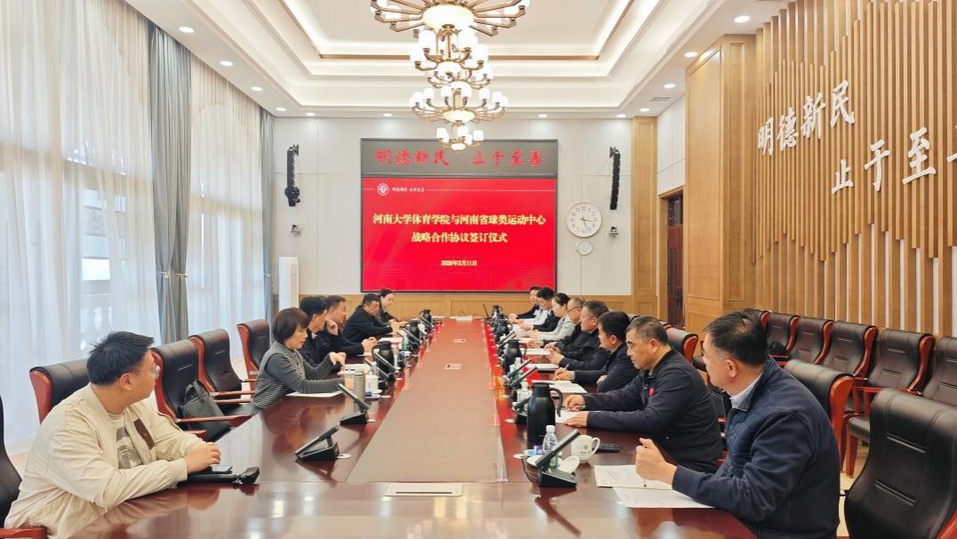 3月11日下午,河南大学体育学院与河南省球类运动中心战略合作协议签订仪式在河南大学龙子湖校区举行。体育学院党委书记段廷良、院长周珂,以及河南省球类运动中心主任王红航、党委书记宋合三等双方代表出席,共同见证河南体育事业融合发展的重要时刻。仪式由学院副院长姚远主持。周珂首先致欢迎辞,详细介绍了学院作为国家一流专业建设点 ,是河南省体育教育、科研与 训练的核心阵地,深耕体育教育、运动训练等领域,在学科建设、人才培养、...